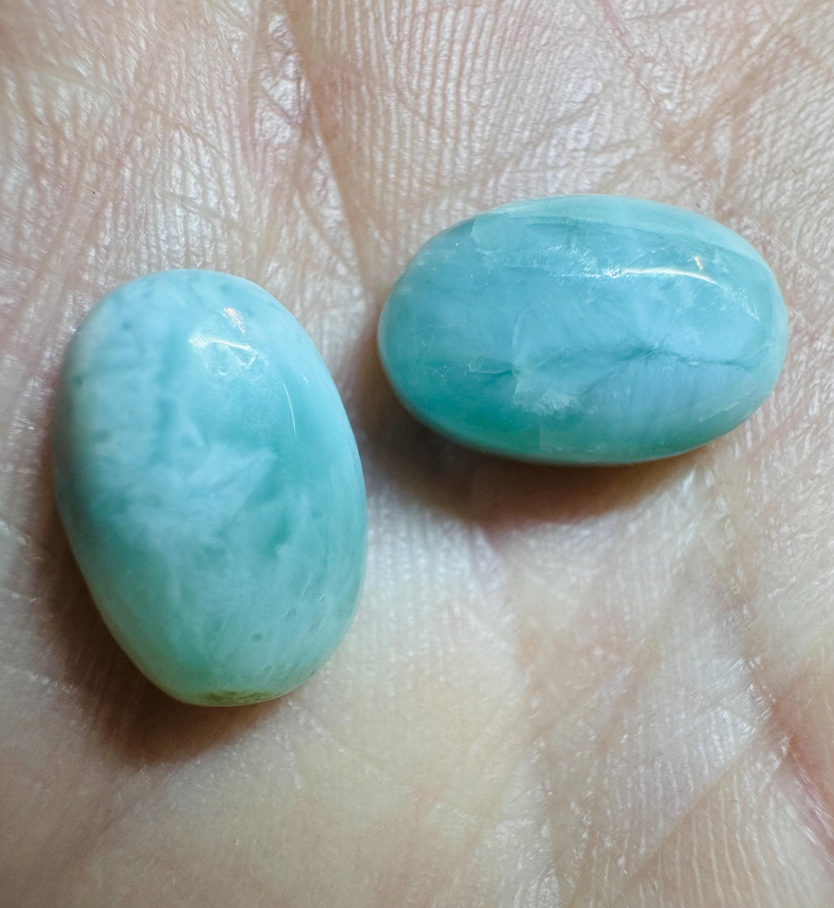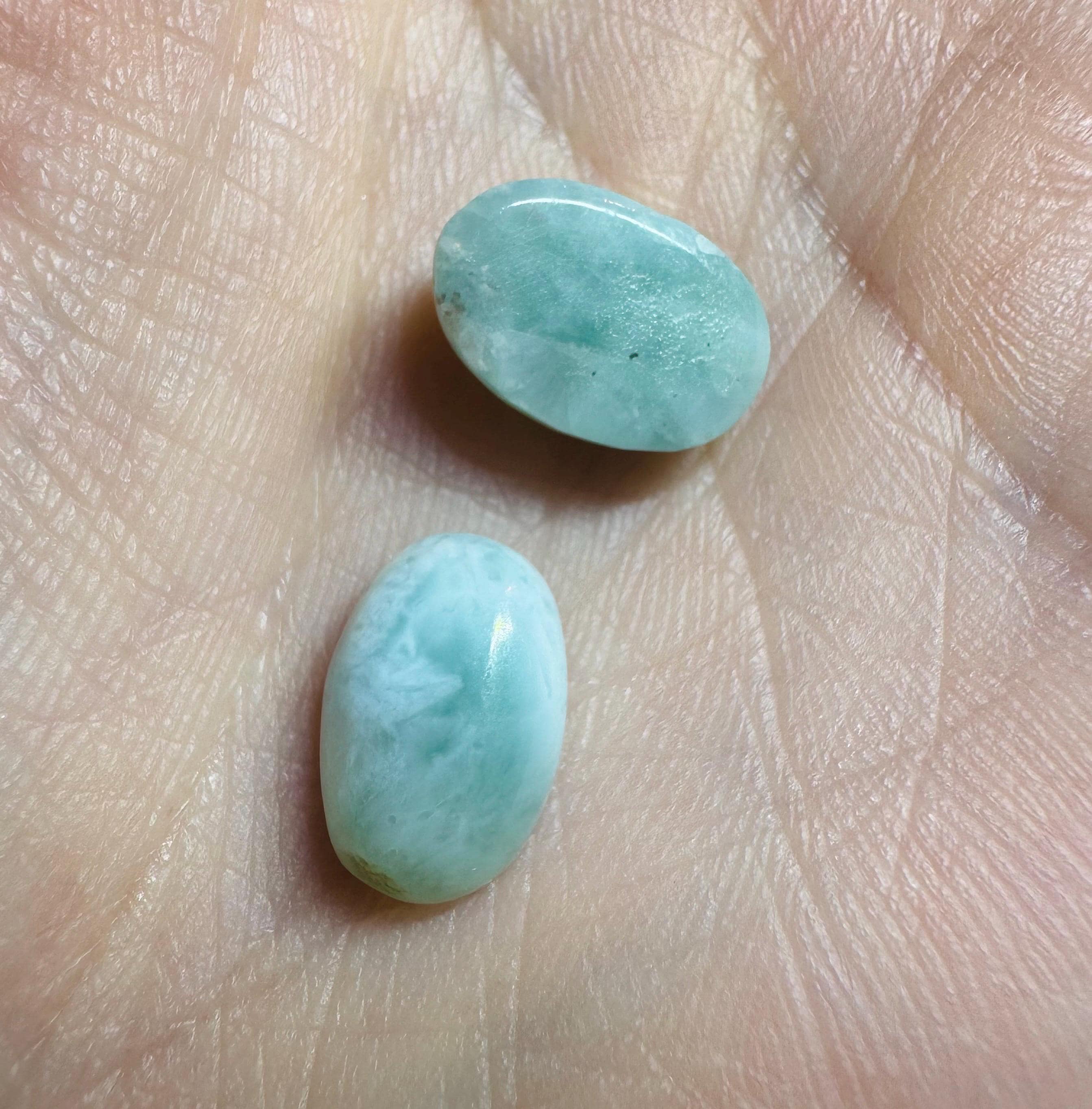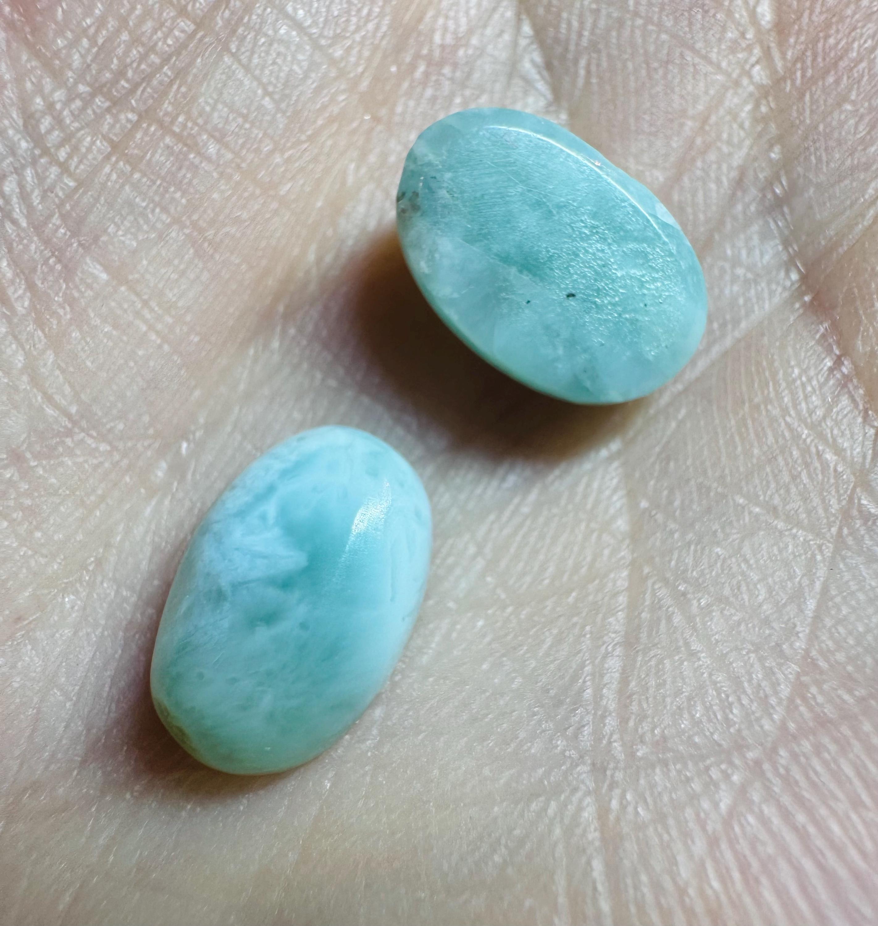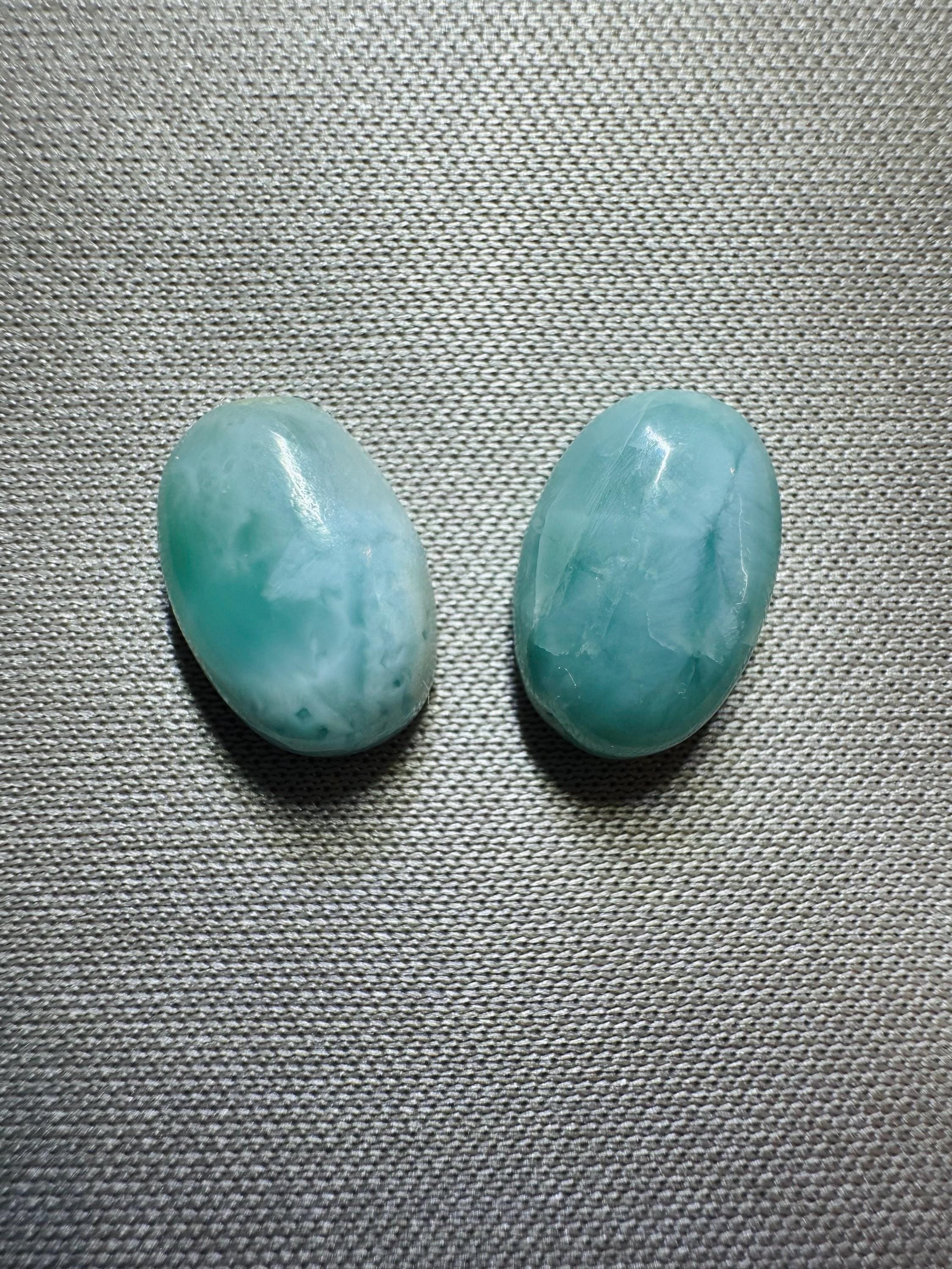 8.05 Carat Genuine Mined Larimar Pair. Loose Gemstone for Making Pendants. Muted Patterned Blue. Lost Atlantis Stone. Chakra. 11 x 7 mm