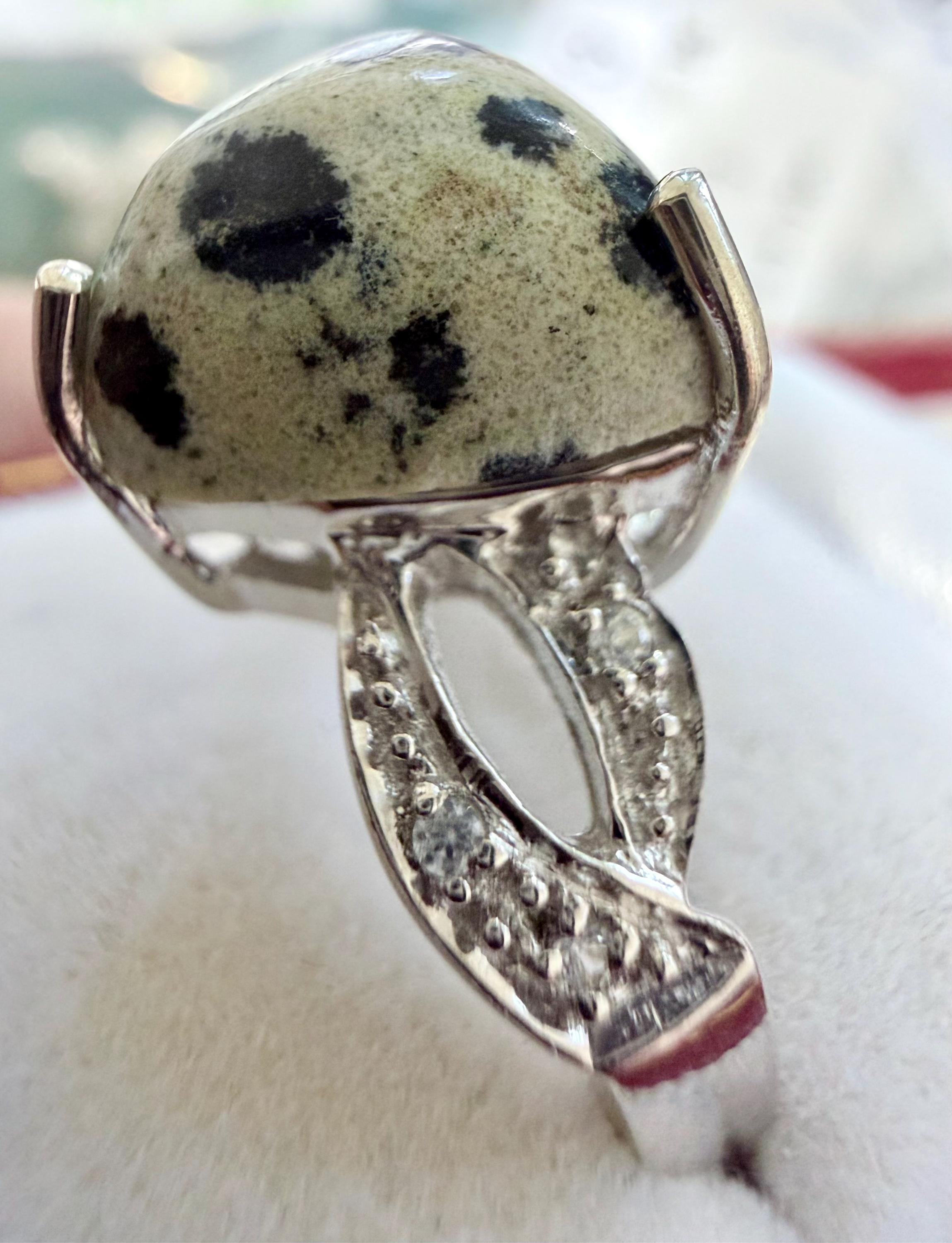 GEMSTONE TYPE: Dalmation Jasper, Shoulder White Zircon